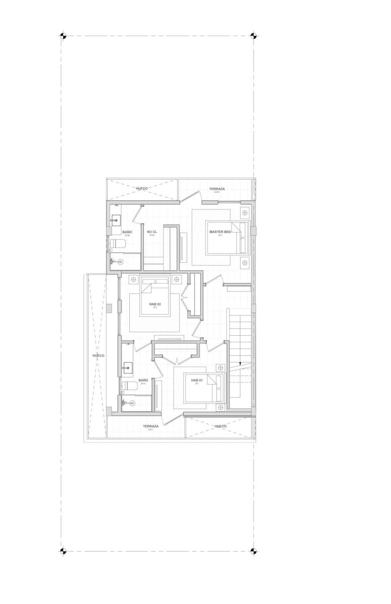 Na parterze znajduje się przestronny salon z jadalnią, kuchnia, toaleta, pomieszczenie gospodarcze, taras oraz prywatny ogród z picuzzi. Na piętrze rozmieszczono trzy sypialnie, w tym główną z łazienką i garderobą oraz dwie dodatkowe łazienki i balkony z widokiem na ogród.