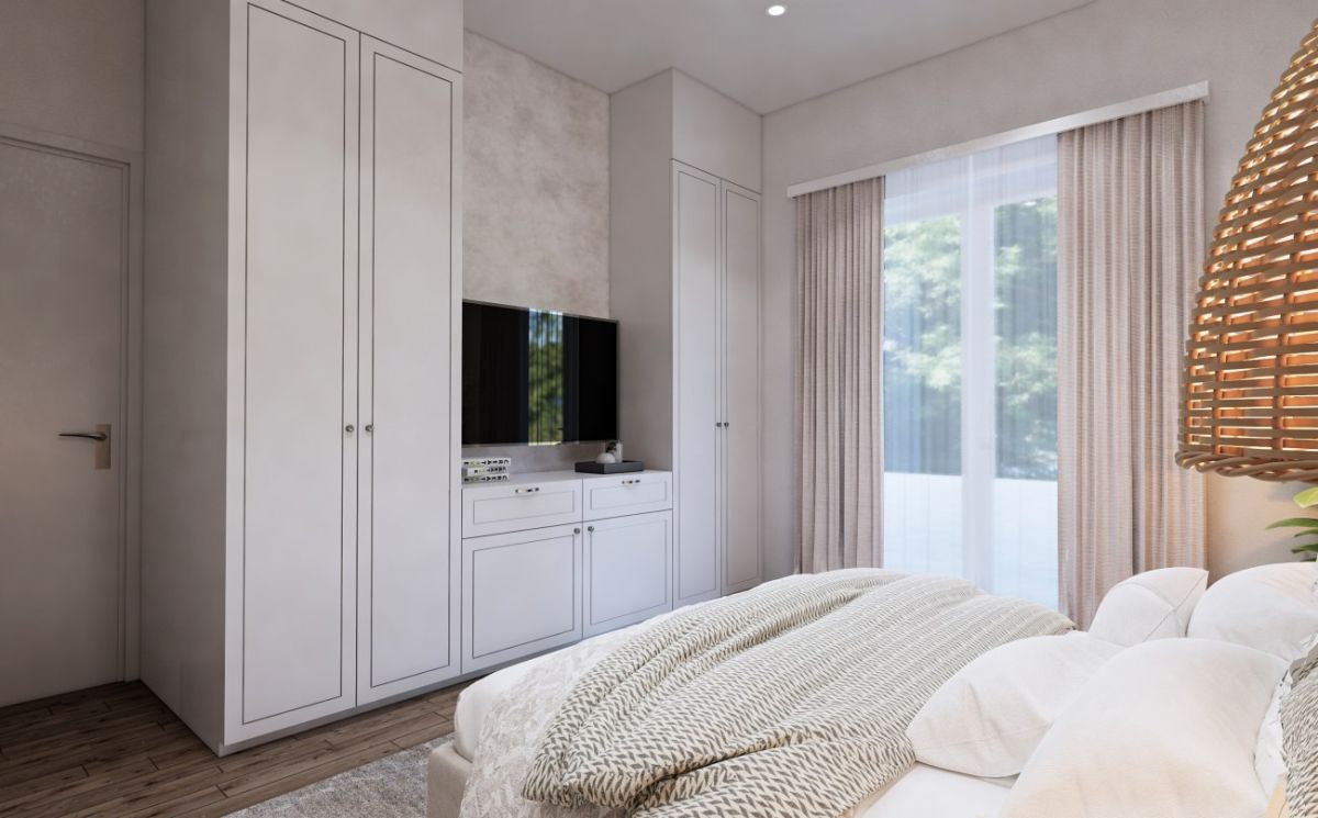 Dom, zaprojektowany w przemyślany sposób, obejmuje dwie dobrze wyposażone sypialnie, z których główna sypialnia posiada własną łazienkę. W dogodnym układzie przewidziano także drugą łazienkę, zapewniającą komfort zarówno mieszkańcom, jak i gościom. Sercem domu jest przestronny salon połączony ze stylową kuchnią. Na zewnątrz prywatny basen stanowi idealne miejsce do relaksu i wypoczynku, położony na dużej powierzchni 2144 m2. działka idealna na zajęcia na świeżym powietrzu, zagospodarowanie terenu lub przyszłą rozbudowę.