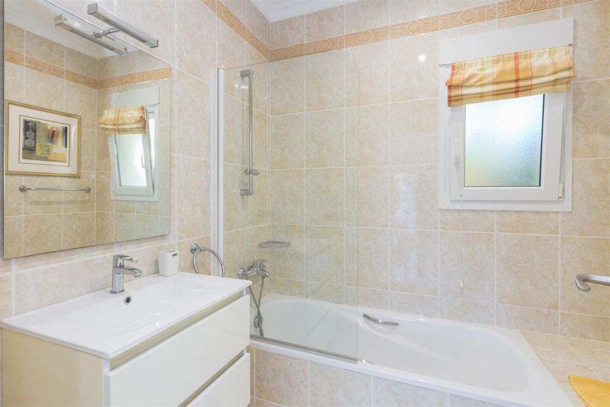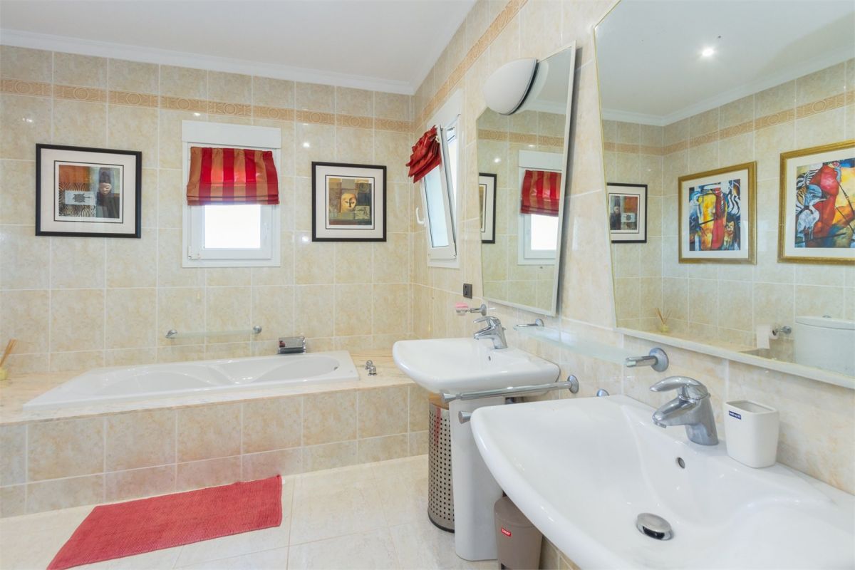 Dom jest rozłożony na 2 piętrach i składa się z przedpokoju, przez który przechodzimy do przestronnego i jasnego salonu, z którego możemy wyjść na werandę i na zewnątrz domu. Obok salonu znajduje się kuchnia, przestronna z dostępem do zamykanego garażu. Całość uzupełniają trzy sypialnie i dwie łazienki. Dodatkowo mały schowek. Wszystkie sypialnie posiadają wbudowane szafy, a dwie z nich mają wyjście do ogrodu. Na piętrze znajduje się główna sypialnia z łazienką, dużą garderobą i dużym tarasem. Jest jeszcze jeden niezależny taras, oba z fantastycznym widokiem na morze.