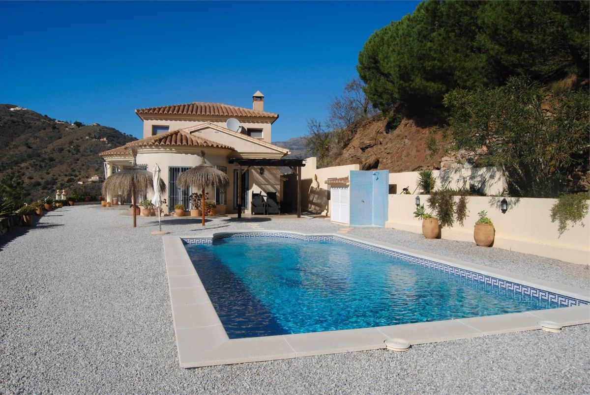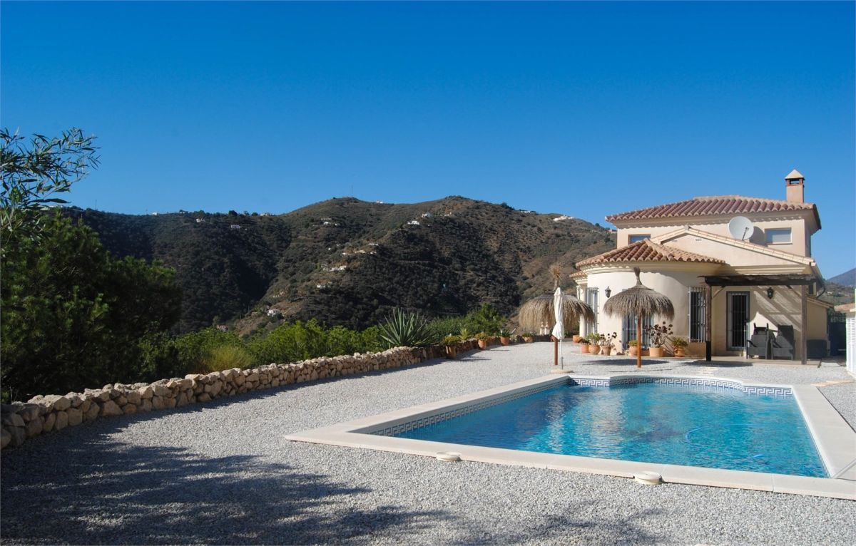 Fantastyczna lokalizacja na szczycie góry w pobliżu Arenas! Wspaniałe widoki z 2 tarasów i basenu na Morze Śródziemne i góry! Salon z kominkiem i jadalnią oraz wysokość sufitu, która bije większość! Stylowa kuchnia. 3 sypialnie, 2 łazienki. Drewniany dom z przylegającą kuchnią i łazienką. Szopa. Sprzedawane nieumeblowane. Asfaltowa, łatwo dostępna droga. Velez Malaga 10-15 min, wybrzeże 20 min. Malaga i lotnisko 45-50 min.