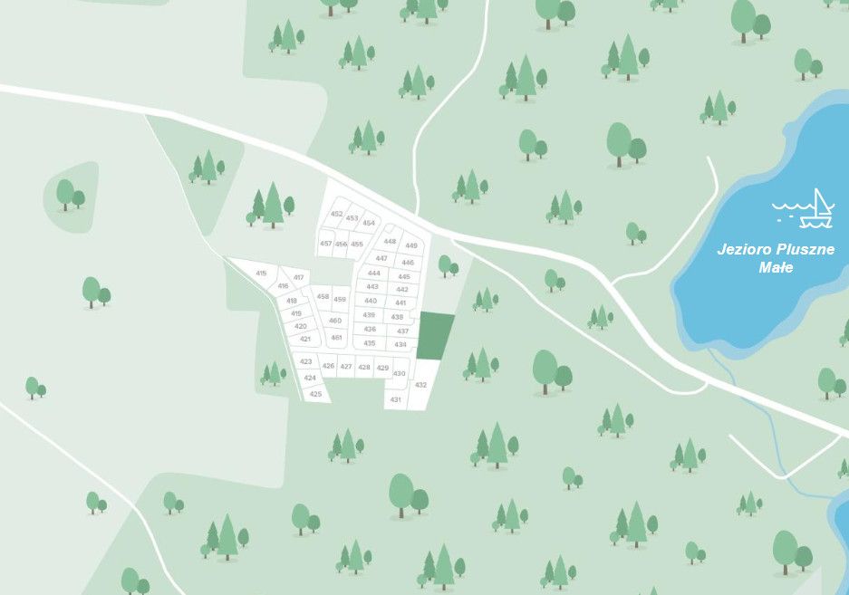 Inwestycja składa się z 43 działek o powierzchni od 1 500 m2 do 4 300 m2.. Dostęp do jeziora umożliwia plaża gminna oraz plaża przy sąsiednim ośrodku wypoczynkowym. Działki przeznaczone są pod zabudowę rekreacyjno-usługową. W odległości 500 m od terenu inwestycyjnego zlokalizowana jest plaża przy ośrodku wypoczynkowym, zaś w odległości 1,5 km plaża gminna z pomostem i boiskiem piłkarskim
