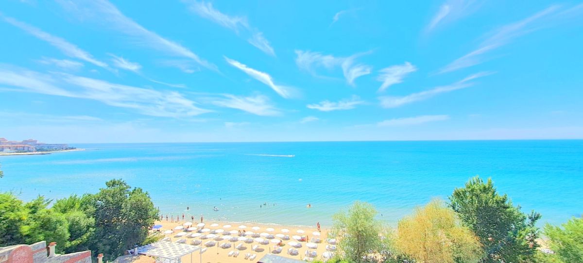 Przestronne dwupokojowe mieszkanie położone w pierwszej linii brzegowej plaży w Sveti Vlas. Mieszkanie ma powierzchnię 72 m² i znajduje się na parterze, co zapewnia bezpośredni dostęp do plaży.