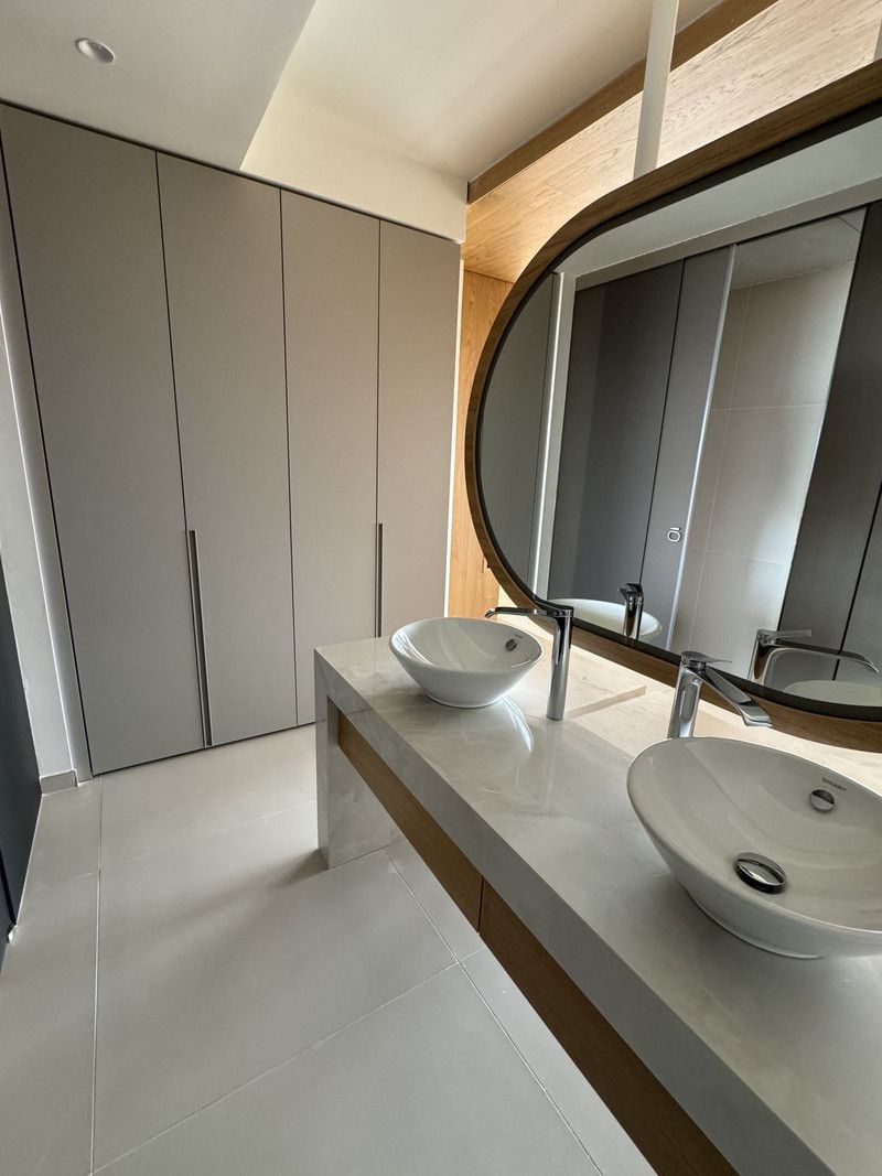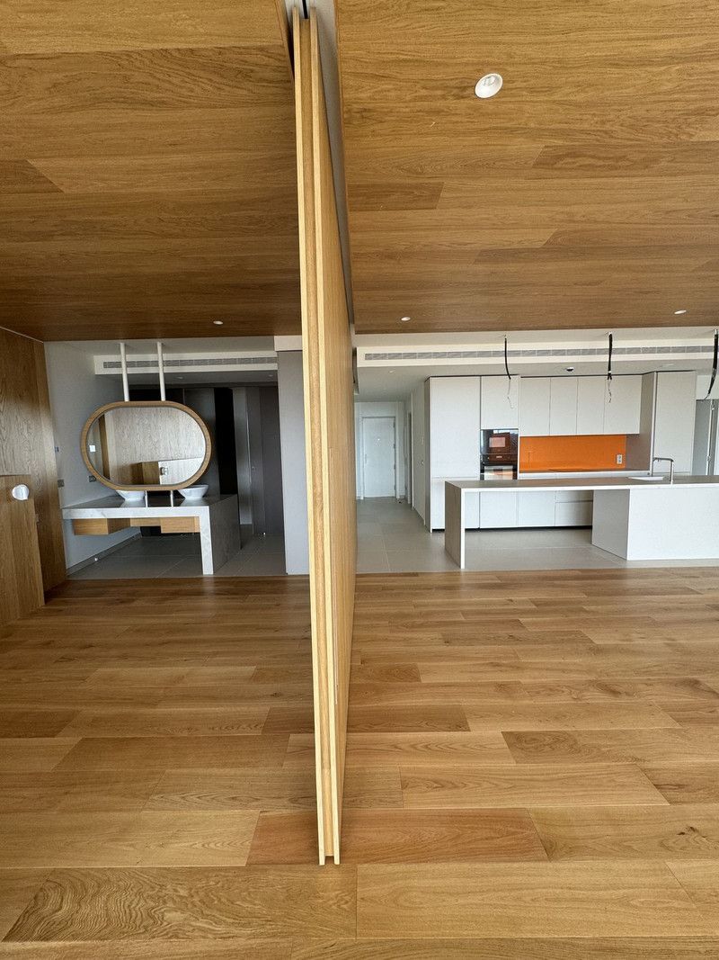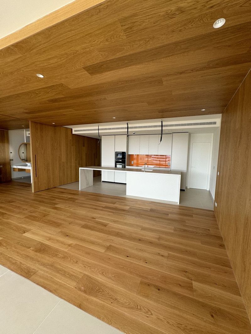 Apartament wyróżnia się jasnym, przestronnym wnętrzem wykończonym z dbałością o każdy detal. Do dyspozycji właściciela są: salon z aneksem kuchennym, trzy komfortowe sypialnie, dwie stylowe łazienki oraz dwa miejsca parkingowe w garażu podziemnym, wyposażone w prywatną stację ładowania pojazdów elektrycznych. Dodatkowym udogodnieniem jest komórka lokatorska, zapewniająca dodatkową przestrzeń do przechowywania.