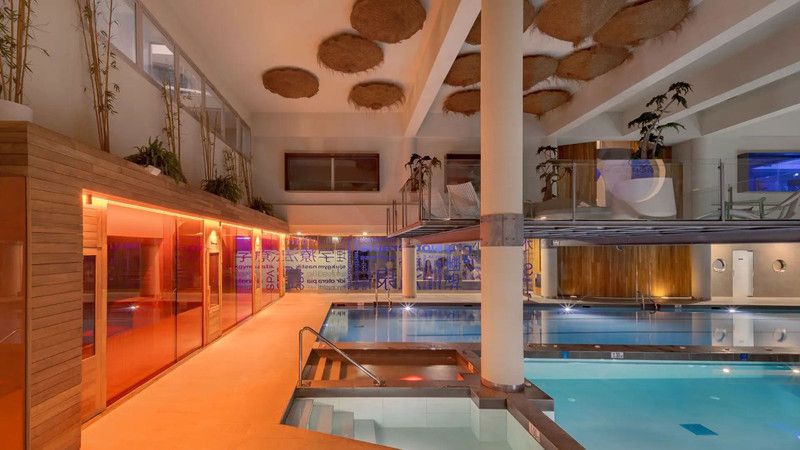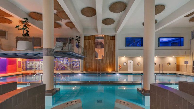 - wewnętrzne, podgrzewane baseny, saunę, jacuzzi i łaźnię turecką,