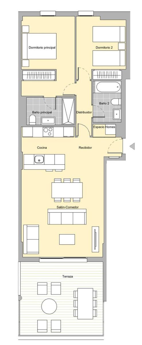 Apartament ma przestronne, jasne wnętrza i duże okna od podłogi do sufitu. Do mieszkania przynależy taras z przeszkloną balustradą, z którego rozciąga się piękny widok na Esteponę.