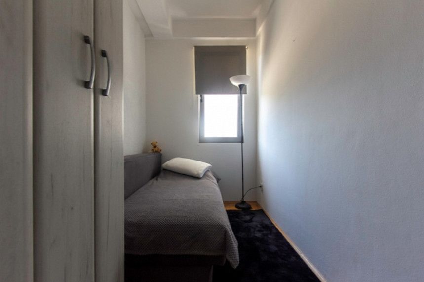 Układ mieszkania: kuchnia połączona z salonem, duża sypialnia, mała sypialnia, taras.