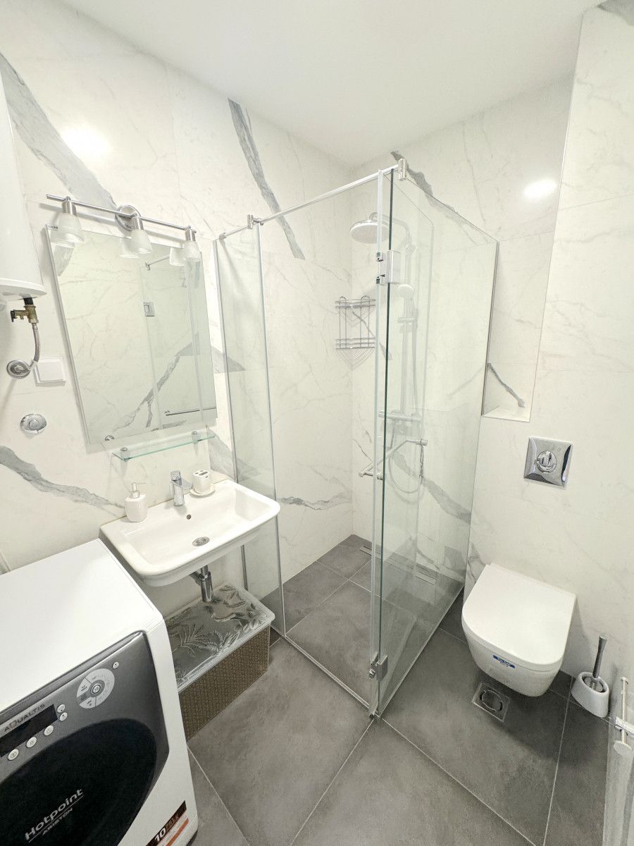 Mieszkanie składa się z: kuchni z salonem, strefy jadalnej, sypialni, łazienki i tarasu z widokiem na morze.