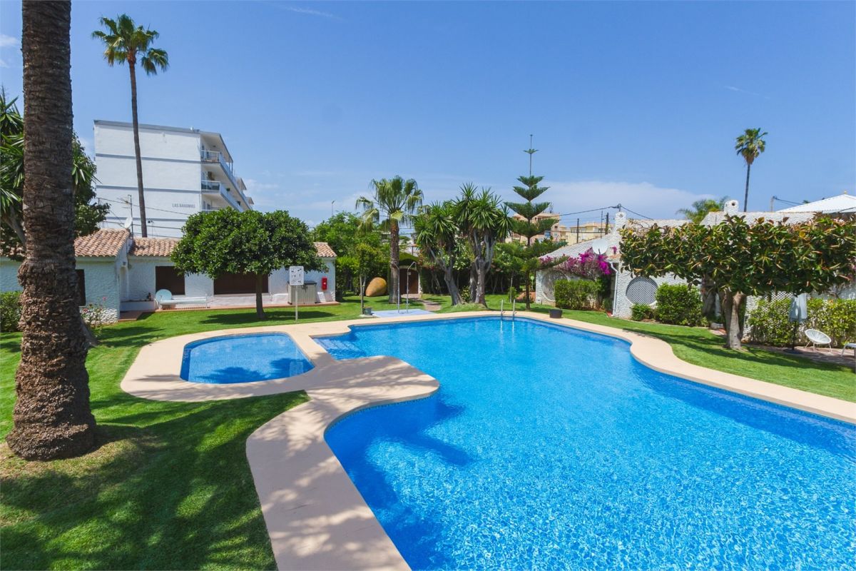 Ten piękny bungalow położony jest w spokojnej urbanizacji, blisko wszystkich usług, zaledwie 200 m od piaszczystej plaży i niecałe 3 km od miejskiego centrum Denia.