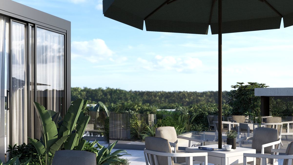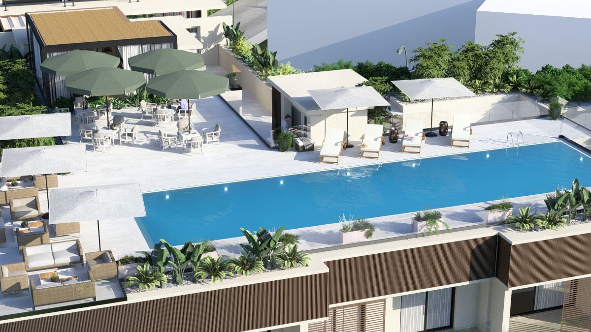 Projekt wyróżnia się podejściem nastawionym na wellbeing i zrównoważony rozwój. Na dachu znajduje się panoramiczny basen zasilany energią słoneczną, a wokół budynku zaprojektowano zielone strefy relaksu sprzyjające odpoczynkowi. Do dyspozycji mieszkańców pozostaje wspólny parking, całodobowa ochrona z kontrolą dostępu oraz strefa recyklingu wspierająca ekologiczne zarządzanie odpadami.