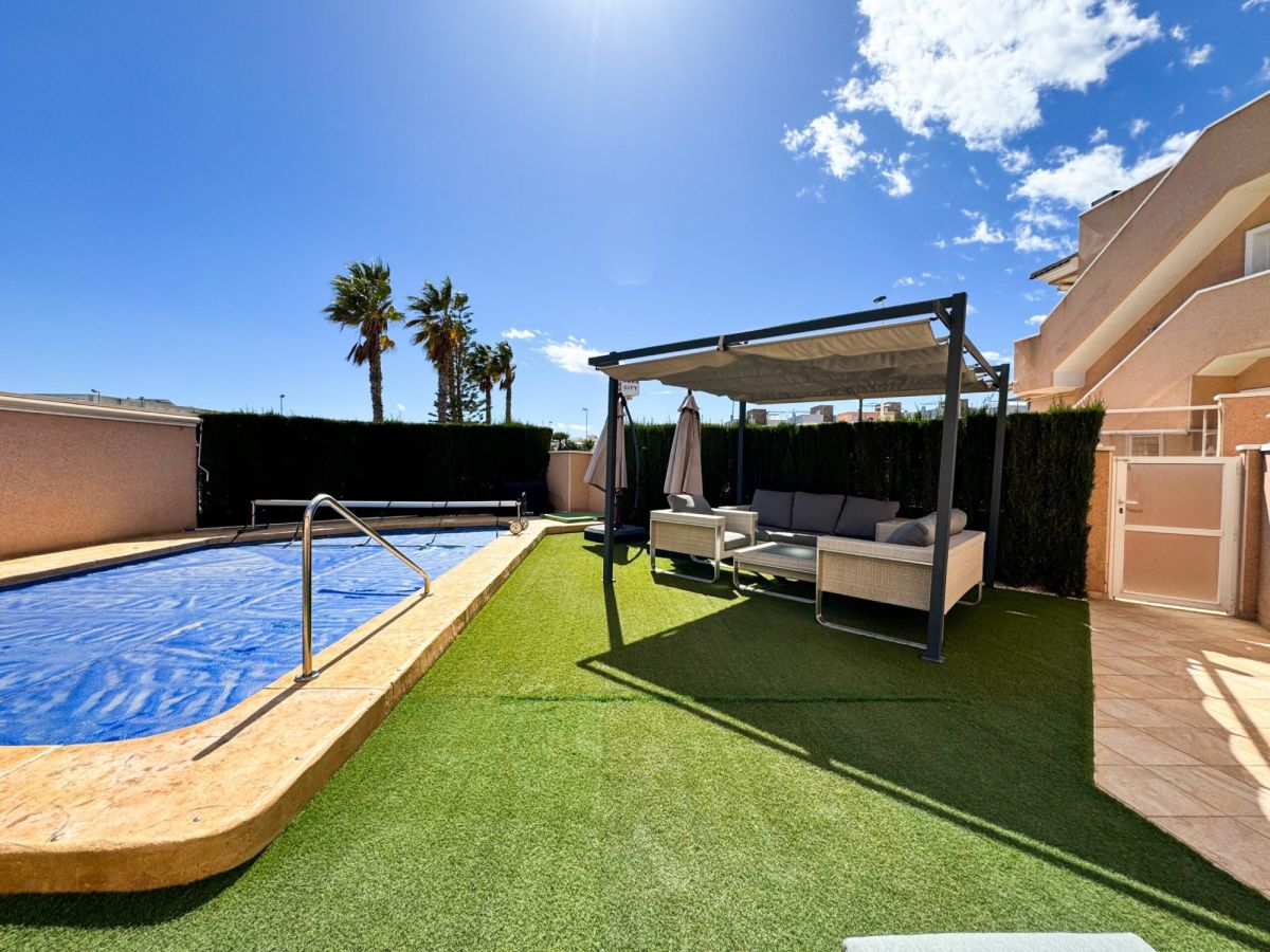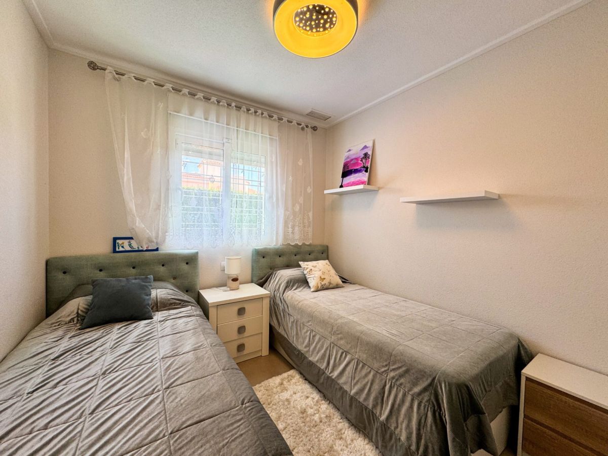 Prezentujemy ten piękny dom podzielony na dwie sypialnie, jedna z nich z łazienką i bezpośrednim dostępem do tarasu domu z widokiem na wspólne obszary kompleksu mieszkalnego. Przestronny salon-jadalnia z kuchnią na otwartym planie i bezpośrednim dostępem do tarasu o powierzchni 29 m2 z widokiem na wspólne obszary kompleksu mieszkalnego. Posiada dużą działkę o powierzchni 145 m2 z prywatnym basenem z podgrzewaną wodą.