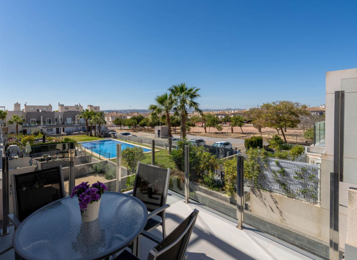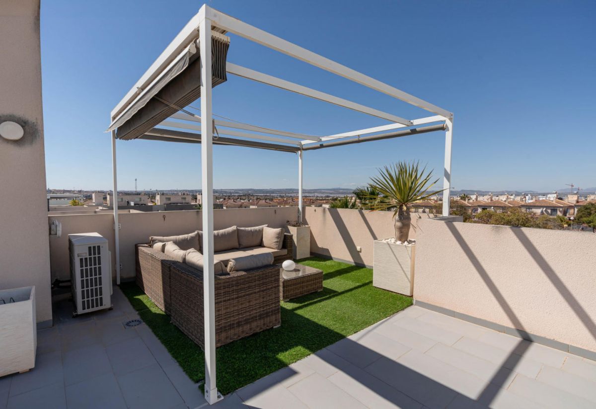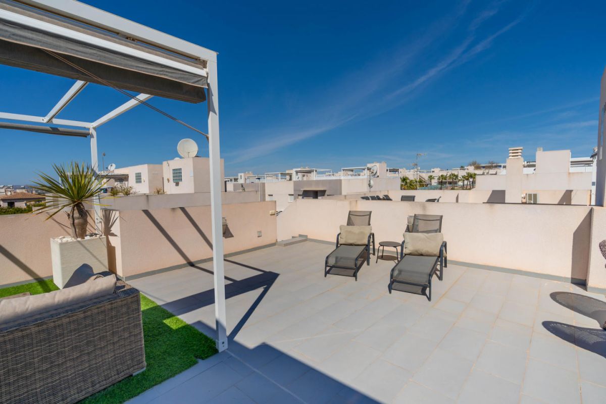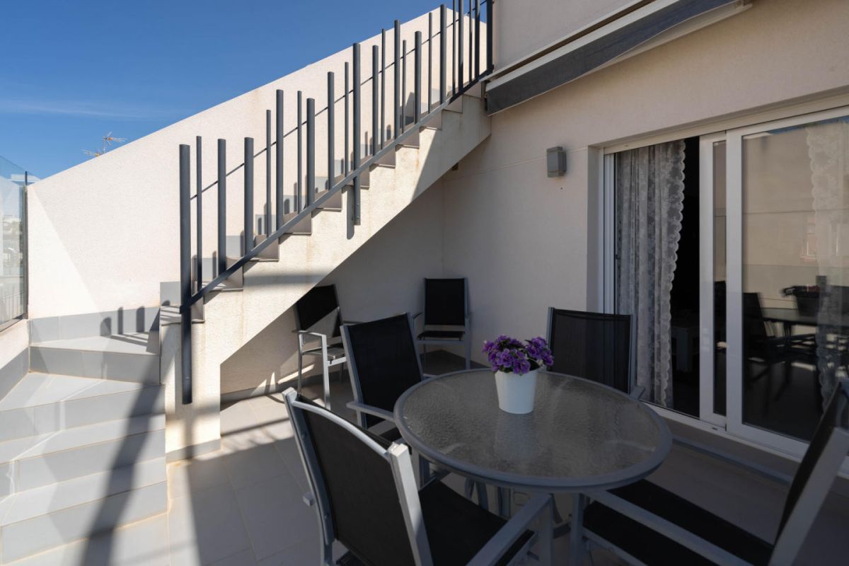 Z przyjemnością oferujemy naszym klientom ten piękny penthouse w Torrevieja. Apartament składa się z dwóch sypialni, dwóch łazienek, salonu z otwartą kuchnią i dużym balkonem oraz wspaniałego prywatnego tarasu na dachu. Balkon wychodzi na zachód z pięknym popołudniowym słońcem, a z obu tarasów roztacza się piękny widok na okolicę i wspólny basen, w którym można się ochłodzić w gorące letnie dni. Dom ma bardzo nowoczesny styl z jasnymi i eleganckimi materiałami, które sprawiają, że mieszkanie jest bardzo przyjemne. Dom jest bardzo dobrze położony w popularnej okolicy, w pobliżu supermarketów, restauracji, barów i w odległości spaceru od często odwiedzanego piątkowego targu Torrevieja. Stąd można dotrzeć rowerem do największego centrum handlowego w mieście, Habaneras, centrum Torrevieja i słynnej plaży La-Mata. Torrevieja jest miastem tętniącym życiem przez cały rok i można tu znaleźć rozrywkę dla wszystkich grup wiekowych i zainteresowań, takich jak golf, parki wodne, zakupy lub po prostu spędzić dzień na plaży. Jeśli szukasz czegoś zadbanego i nowoczesnego z pięknym patio, znalazłeś właściwe miejsce.