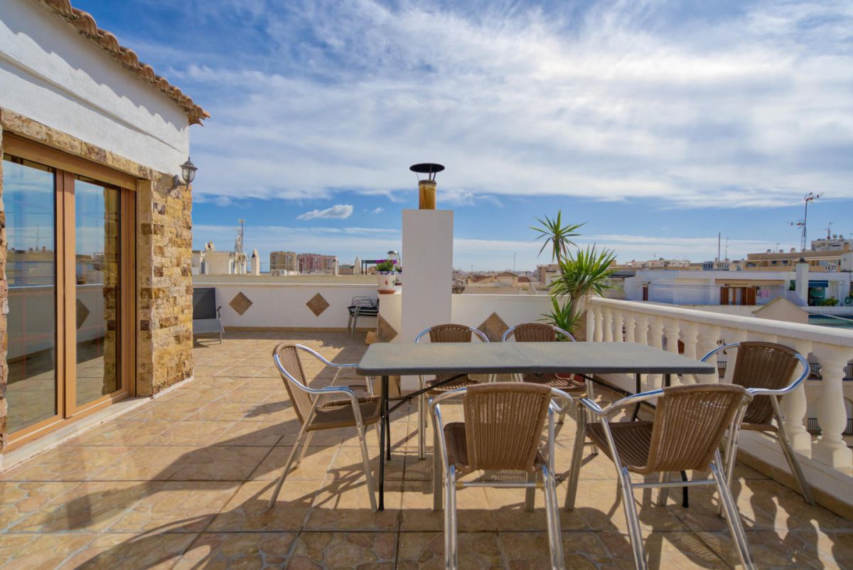 Oferujemy ten fantastyczny penthouse w centrum Torrevieja. Naprawdę jest tu miejsce dla całej rodziny. Dom składa się z czterech do pięciu sypialni, w zależności od tego, jak go urządzisz, dwóch łazienek, salonu z otwartą kuchnią, a także dodatkowego salonu na piętrze. Mniej więcej cały dom został niedawno odnowiony w jasnym i nowoczesnym stylu, dzięki czemu bardzo łatwo się w nim rozwijać. Na górnym poziomie znajduje się to, co czyni ten dom tak wyjątkowym, taras na dachu o powierzchni 109 metrów kwadratowych! Jest tu mnóstwo miejsca, aby cieszyć się słońcem, grillować i spędzać czas z przyjaciółmi i rodziną lub po prostu być.