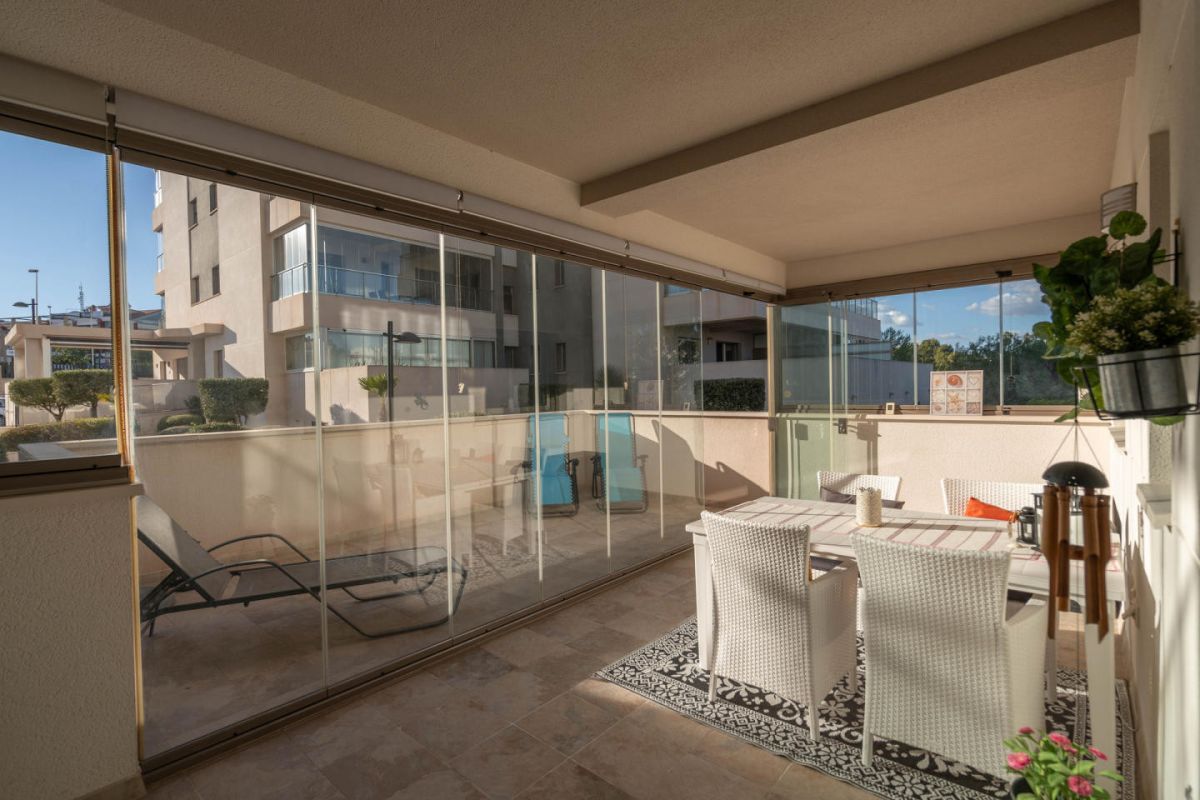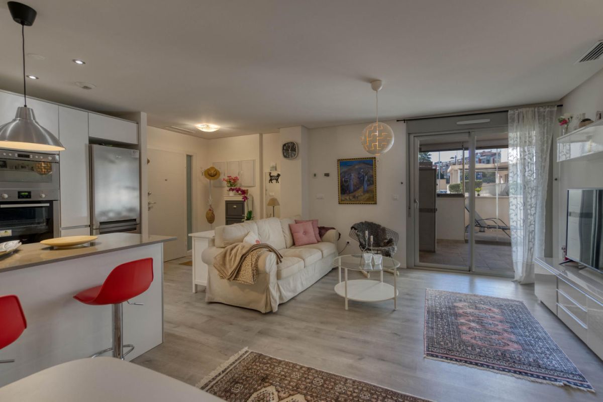 Mamy przyjemność zaoferować ten apartament na parterze w Villamartin. Mieszkanie jest bardzo dobrze utrzymane przez obecnego właściciela. Dom ma dwie sypialnie, dwie łazienki, w tym jedną z łazienką, salon z kuchnią i naprawdę piękny taras. Około połowa tarasu jest przeszklona, a druga połowa jest otwarta. Ponieważ apartament został zbudowany w 2015 roku, ma nowoczesny i jasny design, który jest bardzo przyjemny. Rezydencja posiada również przynależne miejsce parkingowe w okolicy. Społeczność obejmuje wspólny basen, w którym można się ochłodzić, gdy upał jest najbardziej odczuwalny, kryty basen, saunę i siłownię. Villamartín to raj dla golfistów z nie mniej niż 4 polami golfowymi w najbliższej okolicy, z których tak zwane Las Colinas jest uważane za jedno z najlepszych pól golfowych w Hiszpanii. Przez cały rok jest tu dużo aktywności, a w okolicy znajduje się duży wybór restauracji, barów, sklepów i wszystkich usług niezbędnych do pobytu w okolicy, zarówno na wakacjach, jak i na stałe. Do największego centrum handlowego na wybrzeżu można dojechać samochodem w kilka minut, a w pobliżu znajdują się również miejsca rozrywki, takie jak kino, kręgle, minigolf, gokarty, a najbliższa plaża znajduje się około 5 minut jazdy samochodem. którzy chcą cieszyć się dniami słońca i kąpieli.