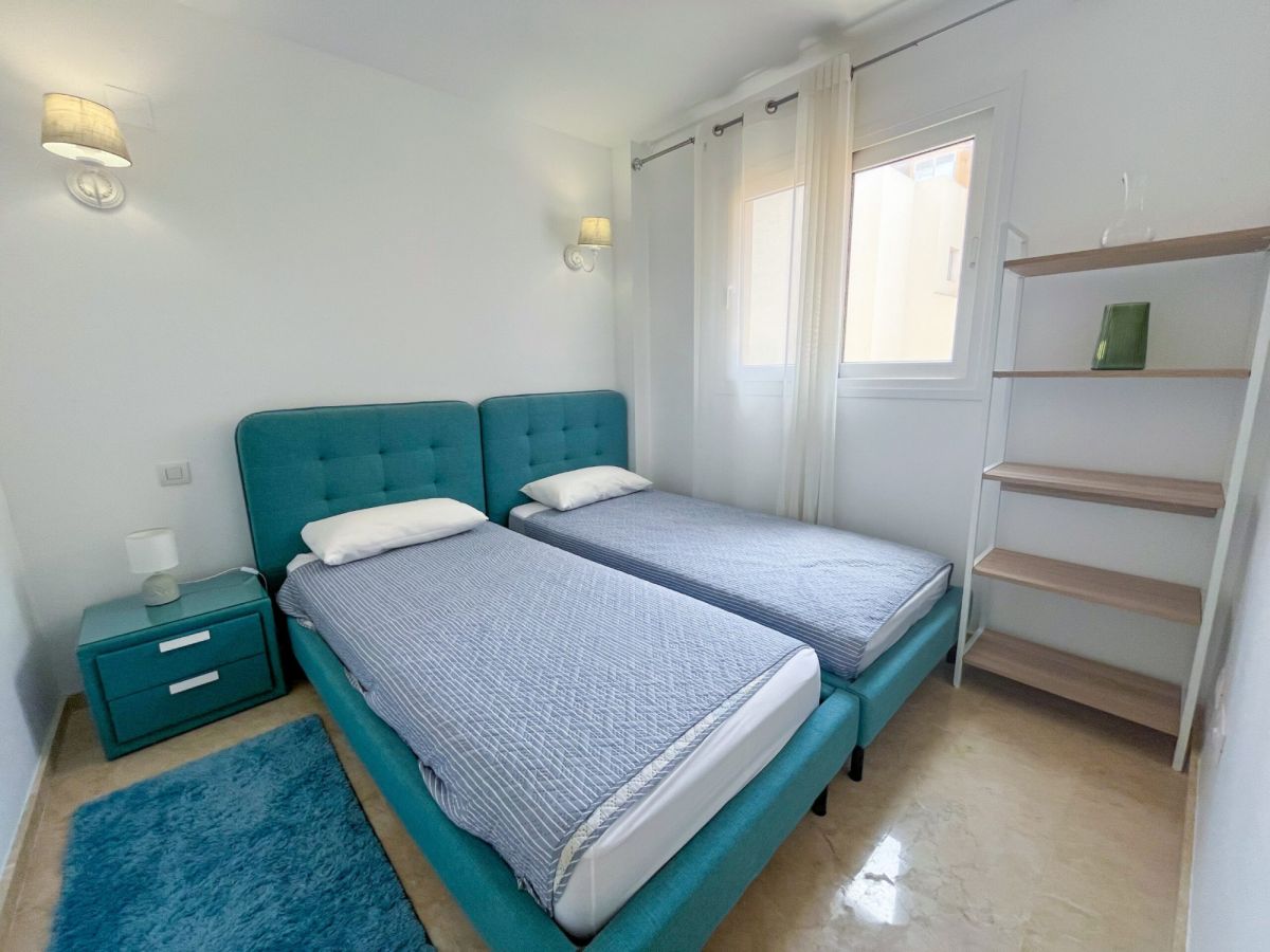 Ładne mieszkanie z 2 sypialniami i 2 łazienkami (jedna z nich z łazienką). W apartamencie znajduje się salon z jadalnią i kuchnia na otwartym planie. Posiada taras od strony zachodniej z widokiem na tereny wspólne. Posiada również miejsce parkingowe i komórkę lokatorską. Mieszkanie znajduje się w kompleksie mieszkalnym z 3 wspólnymi basenami i ogrodami.