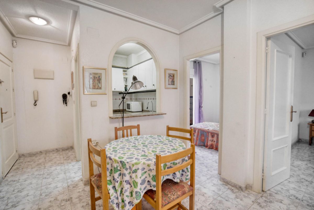 Centralnie położone mieszkanie w Torrevieja. Mieszkanie składa się z dwóch sypialni, łazienki, salonu i kuchni, a także dwóch tarasów. Z salonu wychodzi się na balkon, a z jednej z sypialni można wyjść na patio.