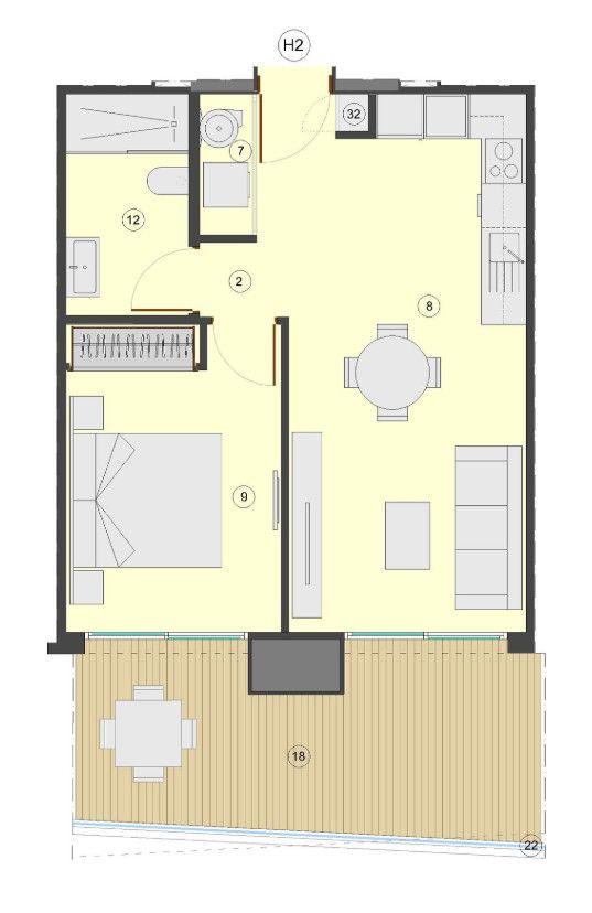 Liczba pokoi: 1 sypialnia, 1 łazienka