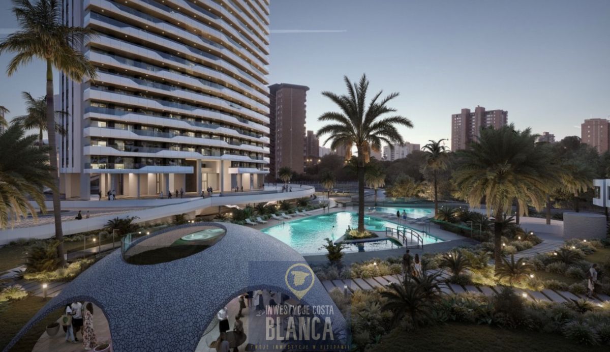 Nowoczesna szklana wieża z 220 apartamentami 2-, 3- i 4-pokojowymi, z dużymi tarasami i pełnym widokiem na morze. Tylko 450 metrów od plaży Poniente. Projekt z segmentu wyższego standardu - zarówno jako inwestycja pod wynajem, jak i drugi dom.