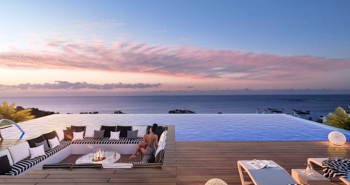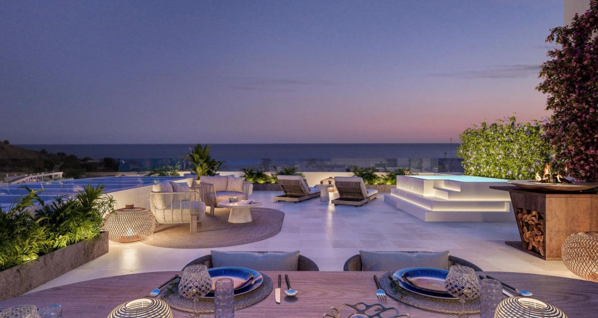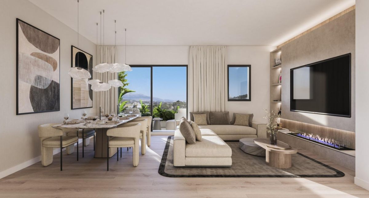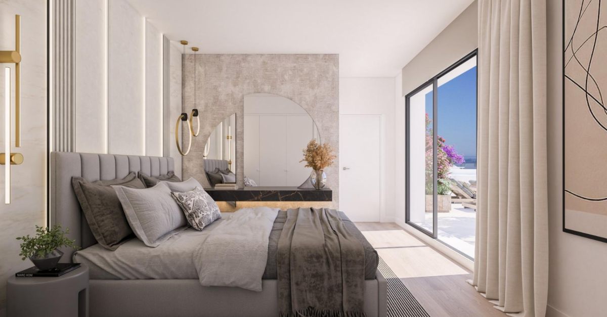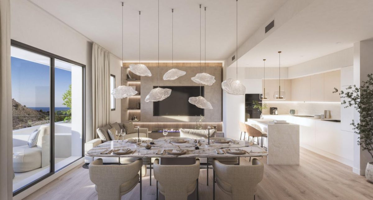 Apartament składa się z 2 sypialni, 2 eleganckich łazienek oraz jasnej, przestronnej strefy dziennej, która płynnie łączy salon z nowocześnie urządzoną kuchnią. Dzięki dużym przeszkleniom wnętrza są pełne naturalnego światła, a z tarasu o powierzchni 11 m² można podziwiać relaksujący widok na Morze Śródziemne.