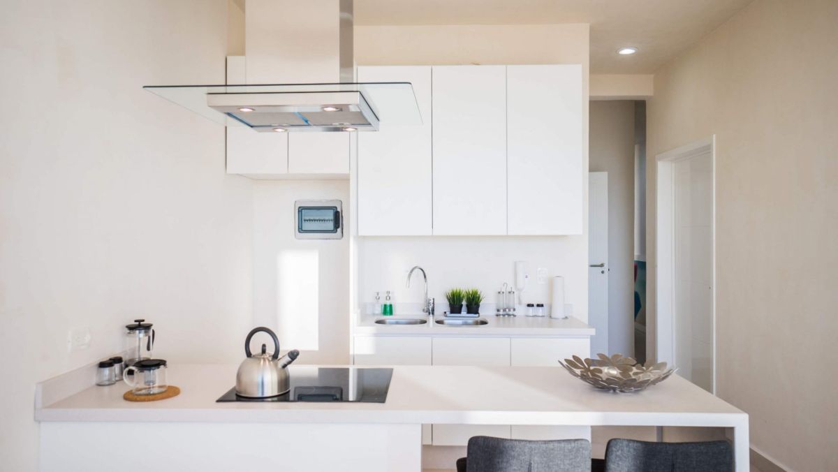 Mieszkania wykończone bardzo nowocześnie w biało-szarych odcieniach i materiałami jakościowymi.
